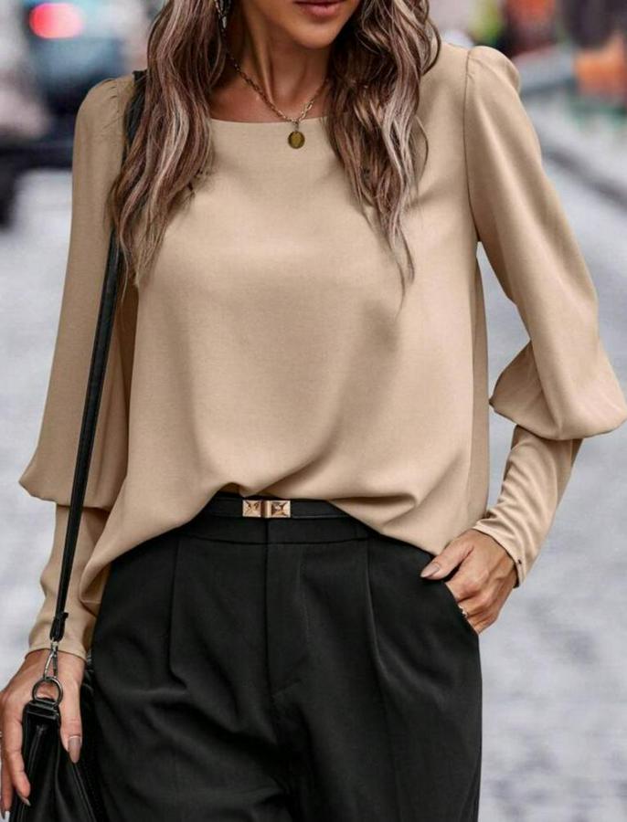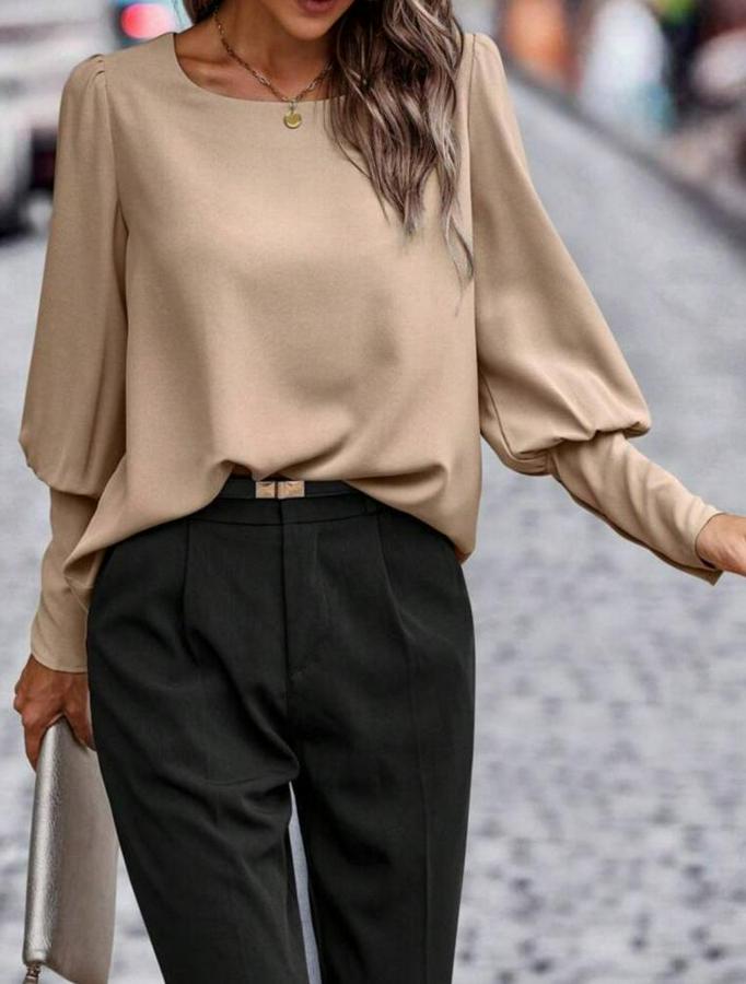 AnasayfaTüm ÜrünlerÜst GiyimBluz & TunikBluzUzun Kollu Yuvarlak Yakalı Düğmeli Ithal Krep Bluz