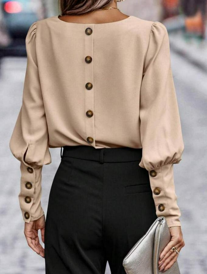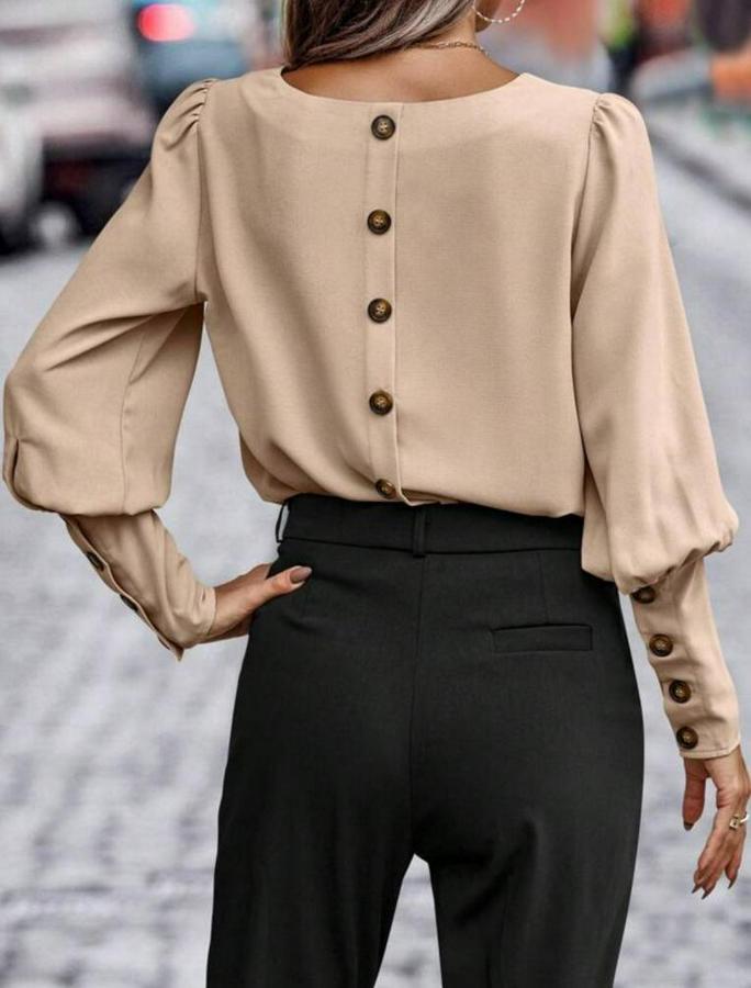 Uzun Kollu Yuvarlak Yakalı Düğmeli Ithal Krep Bluz