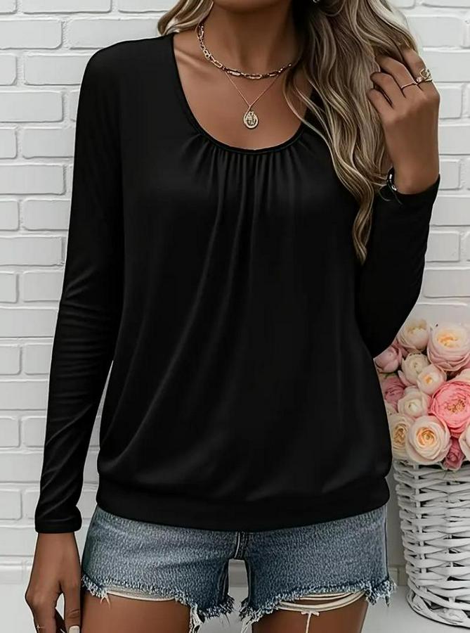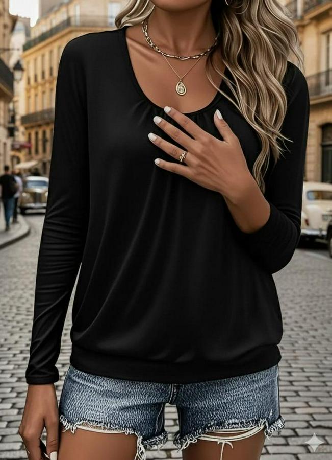 Uzun Kollu Yuvarlak Yakalı Viskon Bluz