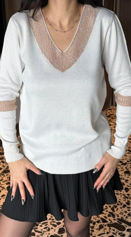 AnasayfaTüm ÜrünlerÜst GiyimBluz & TunikBluzV Yaka Uzun Kollu Gold Işleme Detay Bluz