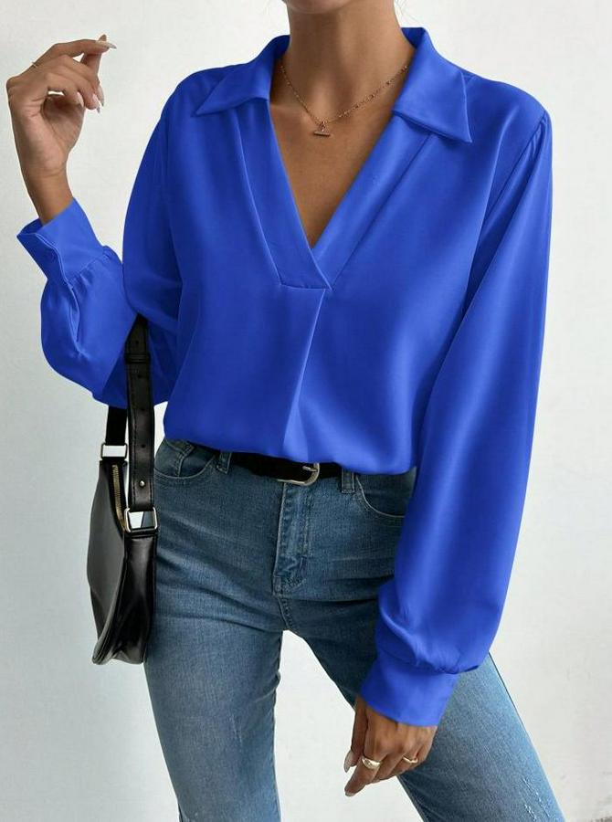 AnasayfaTüm ÜrünlerÜst GiyimBluz & TunikBluzV Yaka Uzun Kollu Mosskrep Kumaş Bluz