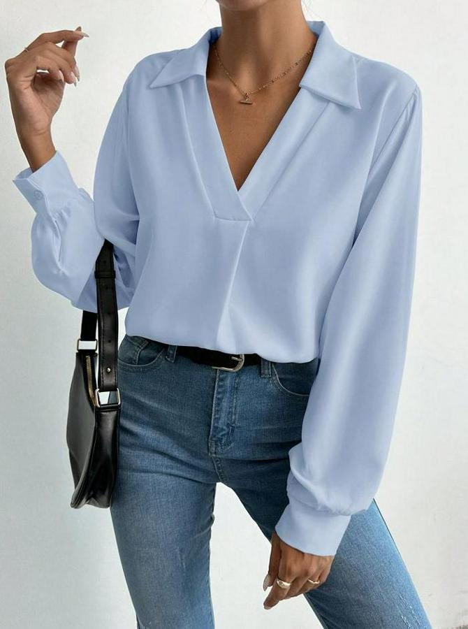 AnasayfaTüm ÜrünlerÜst GiyimBluz & TunikBluzV Yaka Uzun Kollu Mosskrep Kumaş Bluz