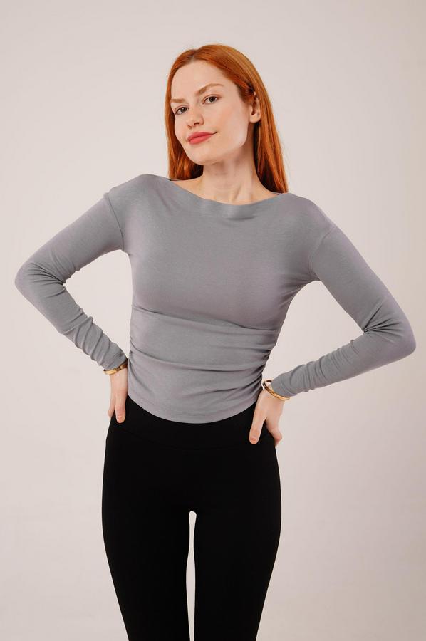 Yaka Detay Uzun Kollu Basic Gri Bluz