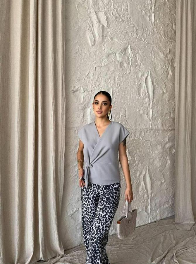 YANDAN BAĞLAMA DETAYLI KOLSUZ BLUZ - Gri