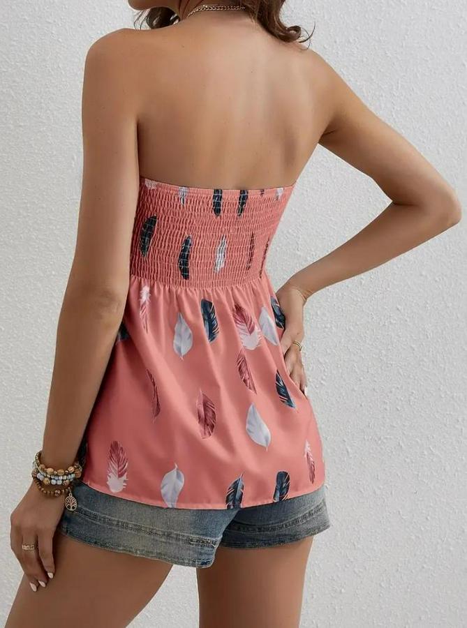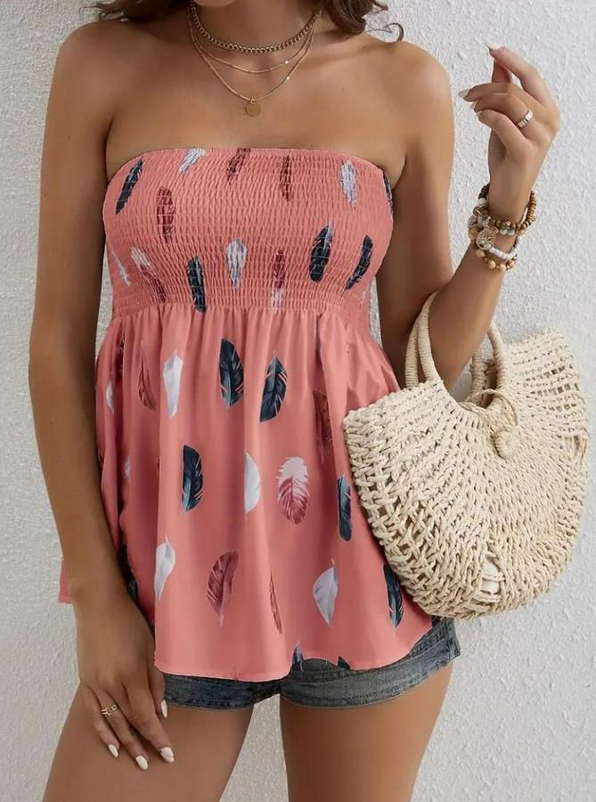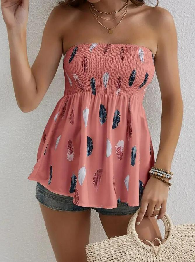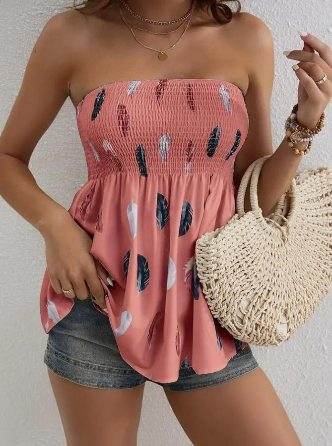 AnasayfaTüm ÜrünlerÜst GiyimBluz & TunikBluzYaprak Desenli Göğsü Gipeli Mosskrep Straplez Bluz