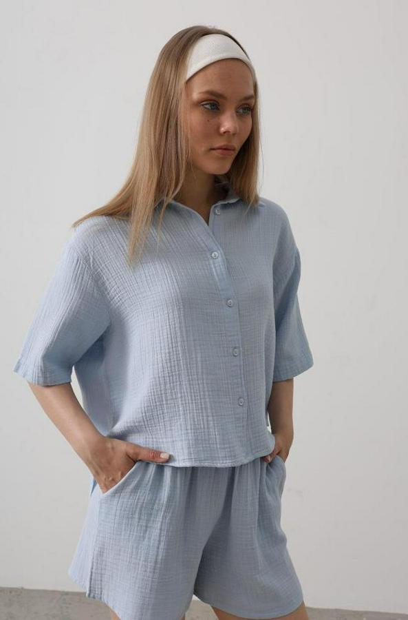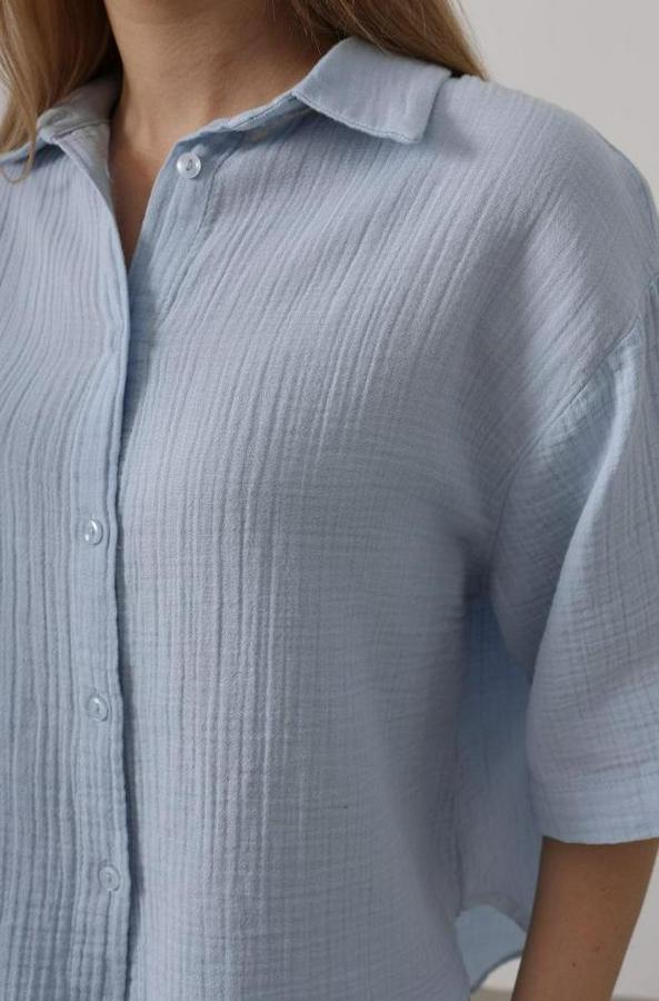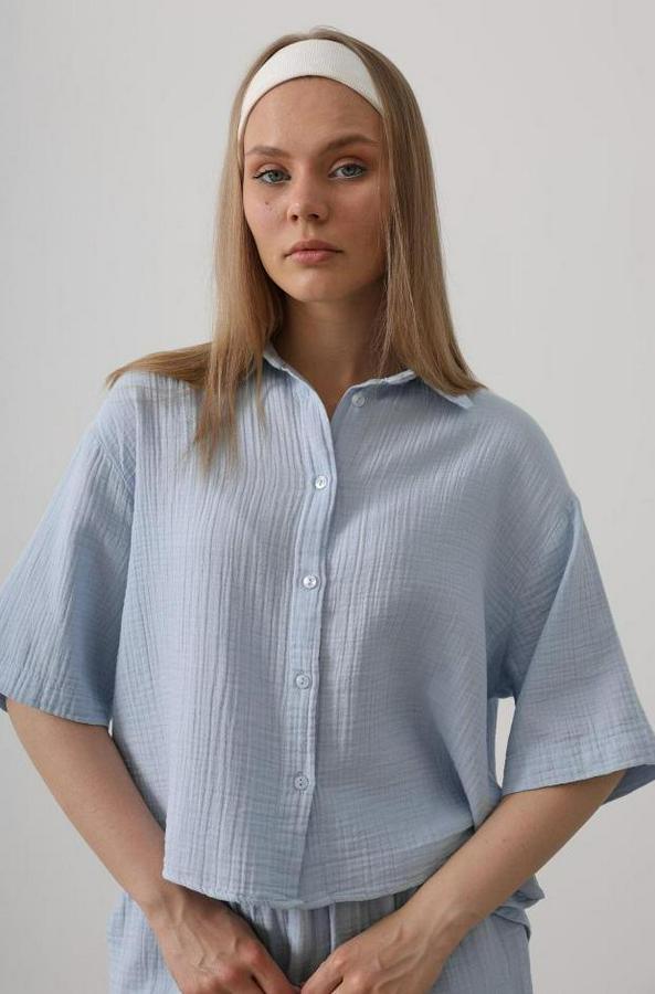 Yarım Kol Müslin Gömlek - Bebe Mavisi