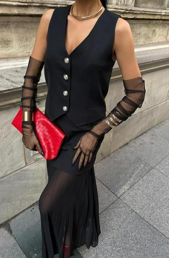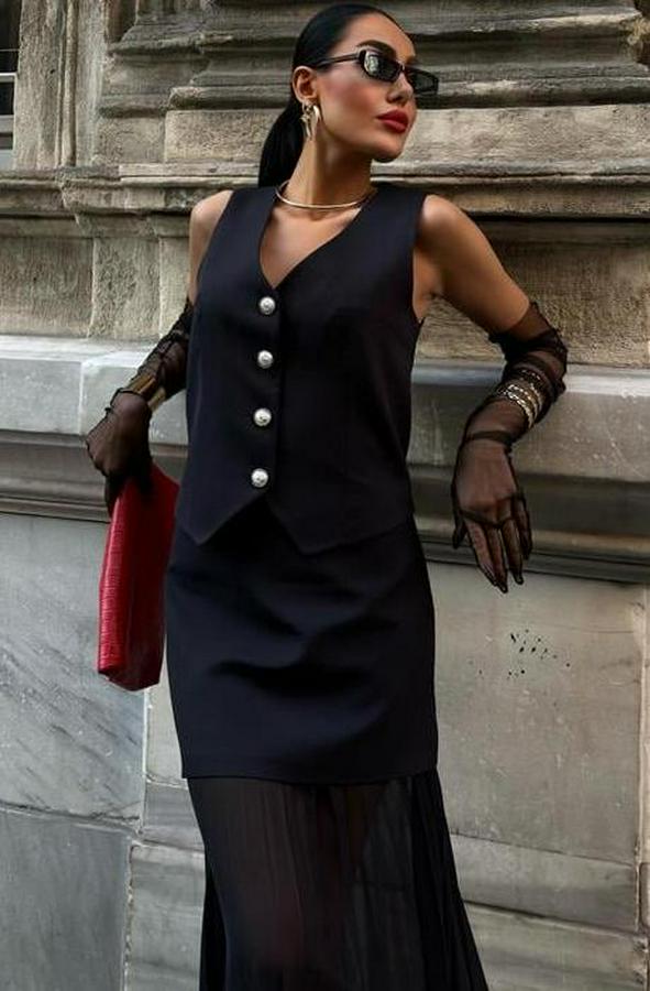 AnasayfaTüm ÜrünlerÜst GiyimBluz & TunikBluzYelek Ve Pilise Etekli Premium Takım 10096