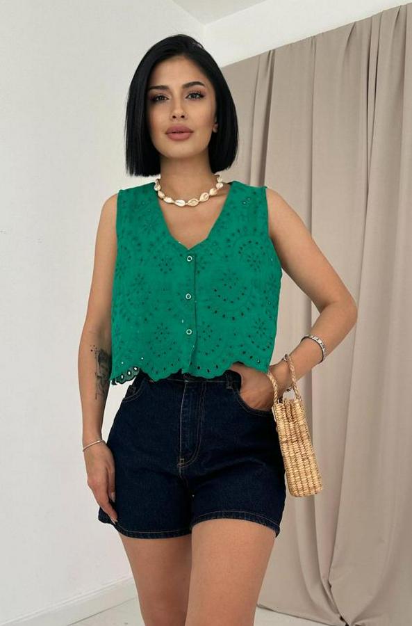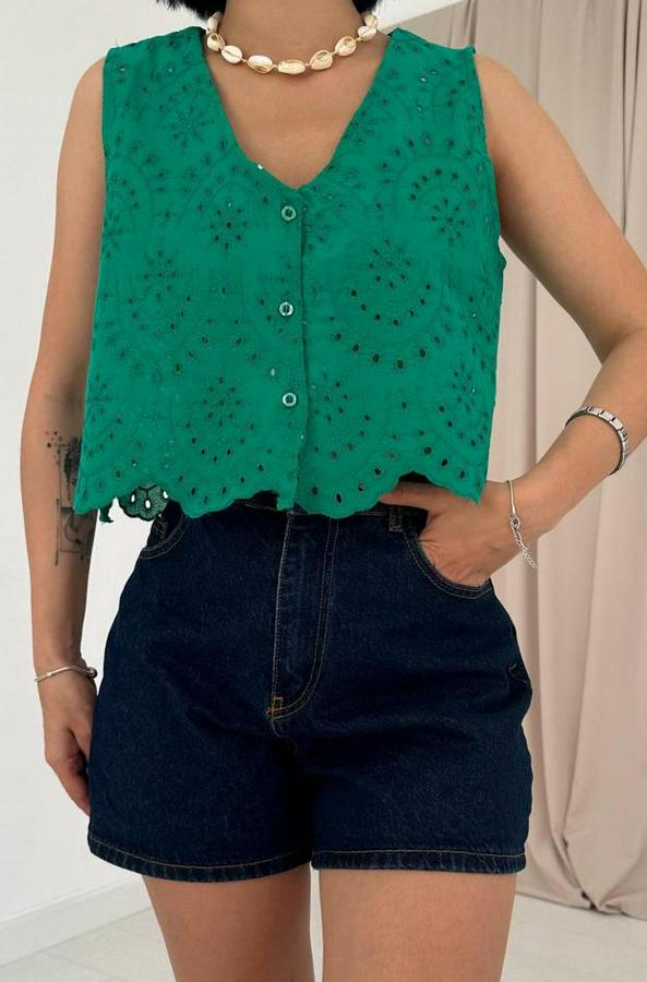 Yeşil Sıfır Kol Brode Bluz