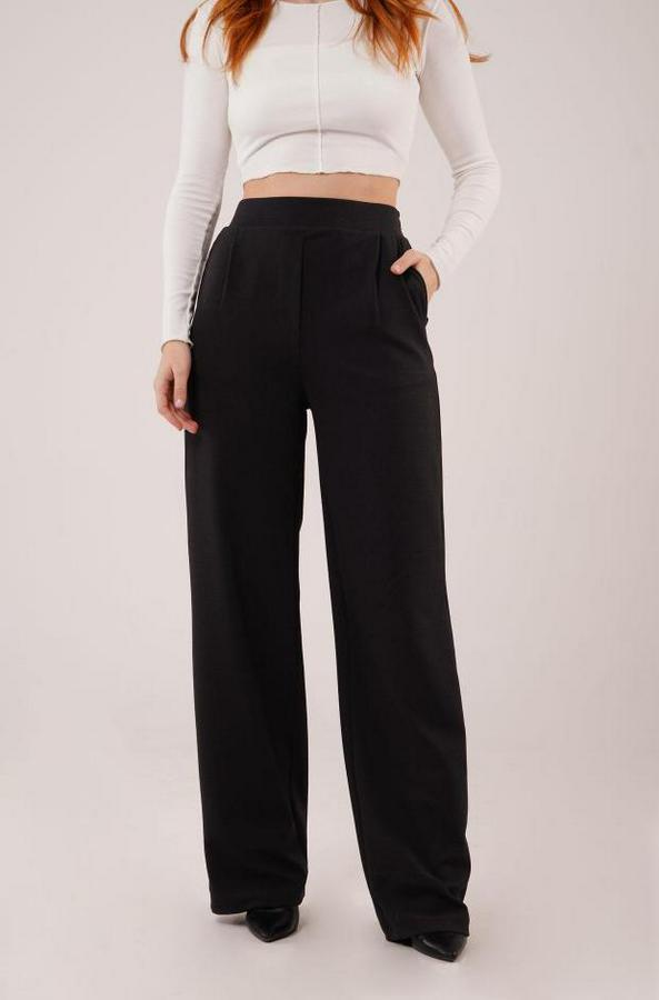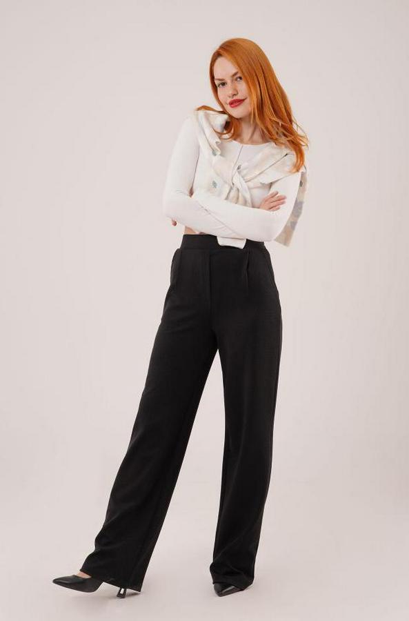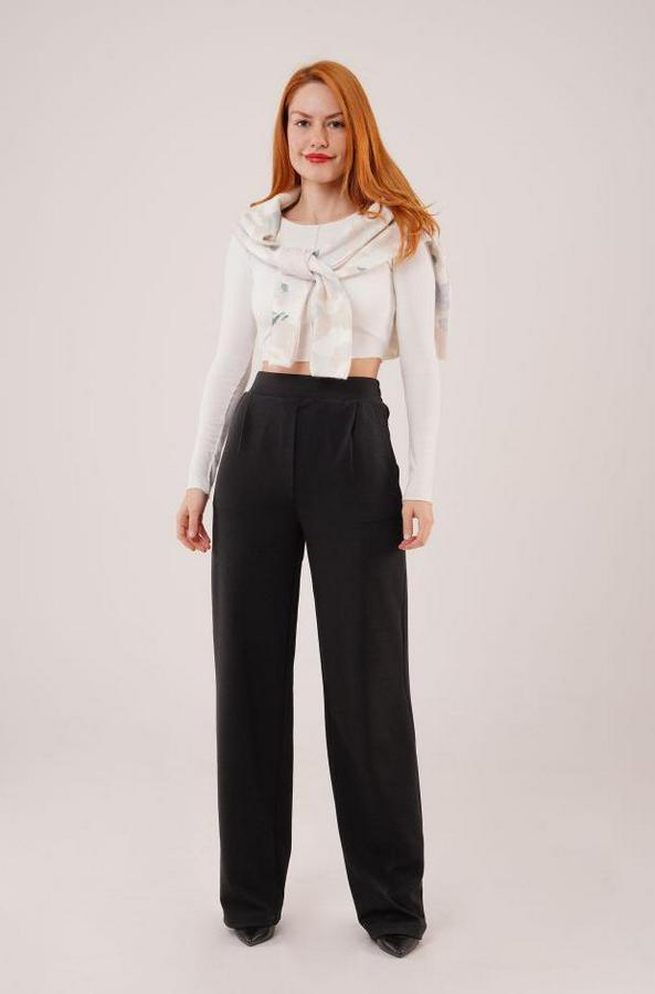 Yüksek Bel Bol Paça Krep Siyah Pantolon