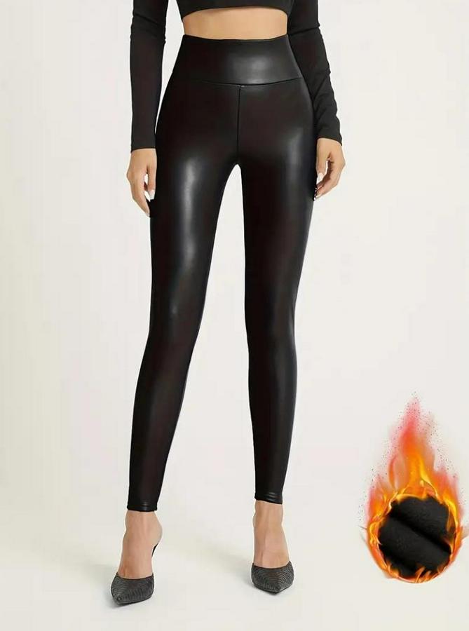 Yüksek Bel Toparlayacı Içi Şardonlu Tam Kalıp Deri Tayt