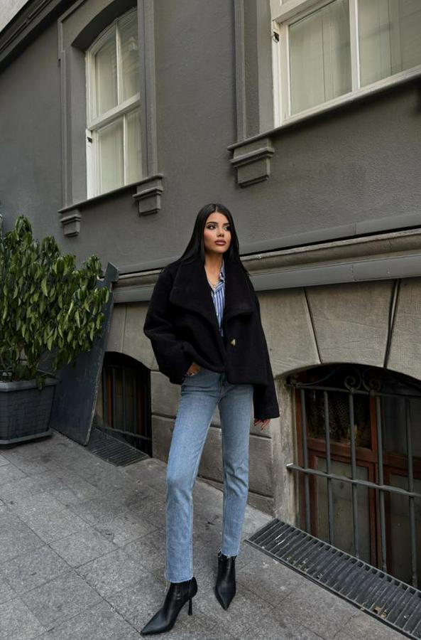 YÜN CROP KABAN - Siyah