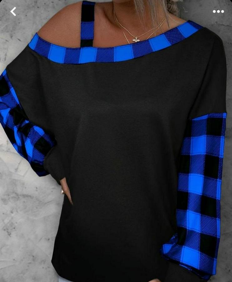 AnasayfaTüm ÜrünlerÜst GiyimBluz & TunikTunikKayık Yaka Asimetrik Kesim Ekose Detay Tunik