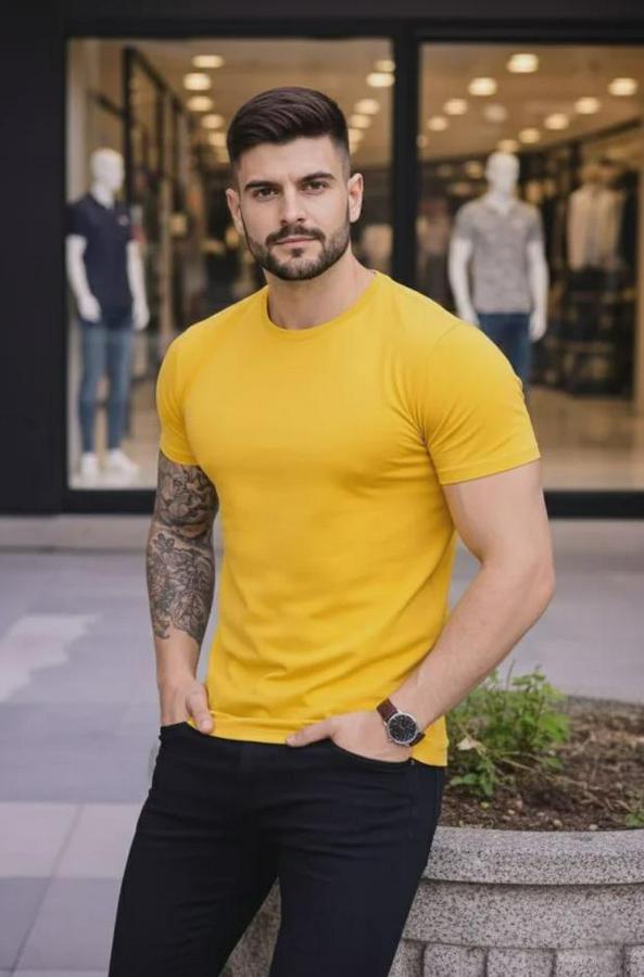 Erkek 3lü Bisiklet Yaka Tişört – Kısa Kollu Yazlık Slim Fit Body - Siyah, Turuncu, Sarı