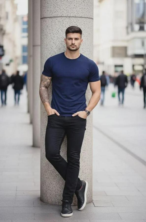 T-Shirt Bisiklet Yaka Slim Fit Dar Kesim Likralı Tişört Günlük Basic Body