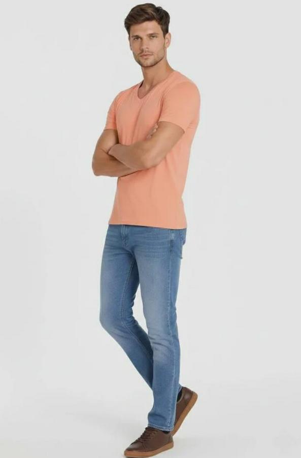 Erkek T-Shirt V Yaka Slim Fit Dar Kesim Likralı Tişört Günlük Basic Body - Toz Pembe