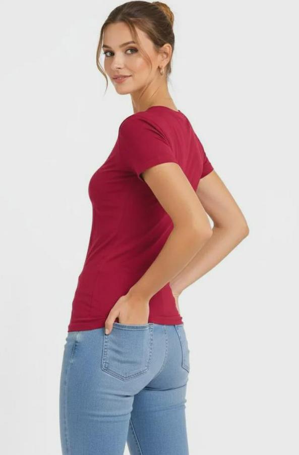 T-Shirt V Yaka Slim Fit Likralı Tişört Günlük Basic Body - Bordo