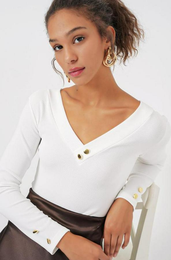 923 Uzun Kollu Body - Beyaz