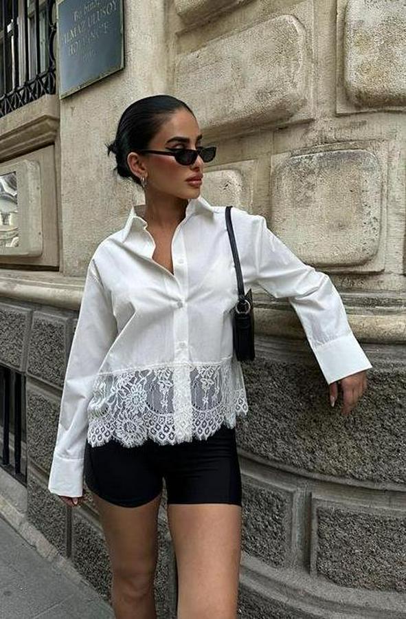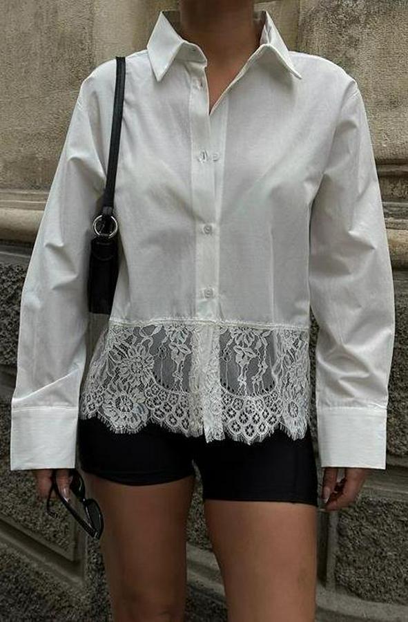 AnasayfaTüm ÜrünlerÜst GiyimGömlekAndrea Dantel Detay Gömlek 3385-08