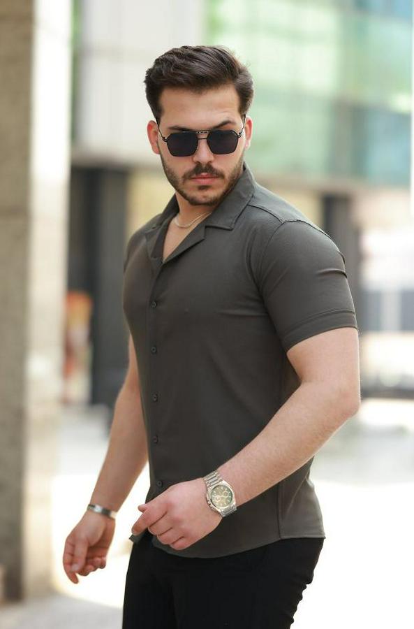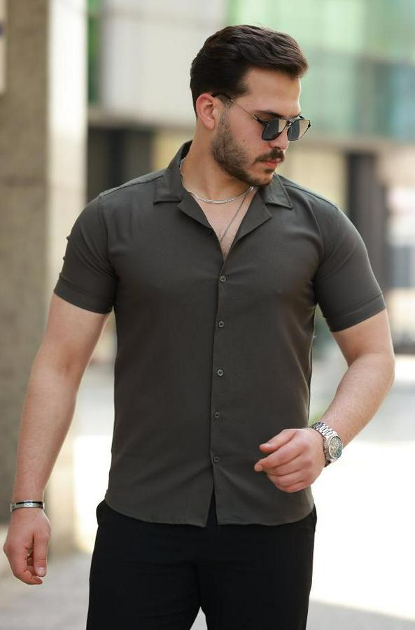Erkek Apaj Yaka Kısa Kollu Gömlek