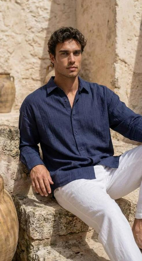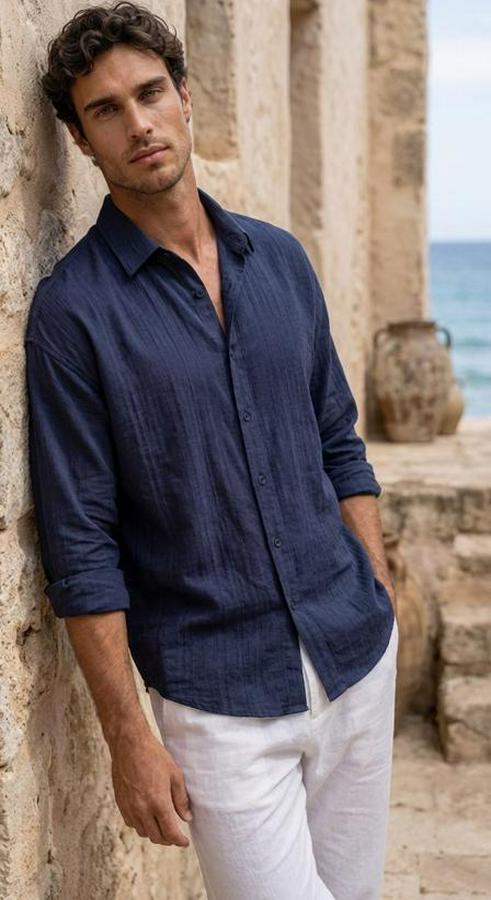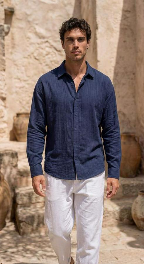Erkek Armürlü Yarım Oversize Müslin Gömlek