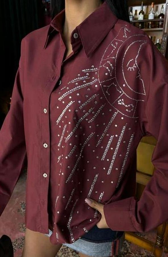AnasayfaTüm ÜrünlerÜst GiyimGömlekAy Figürlü Taş Işlemeli Poplin Gömlek 3440