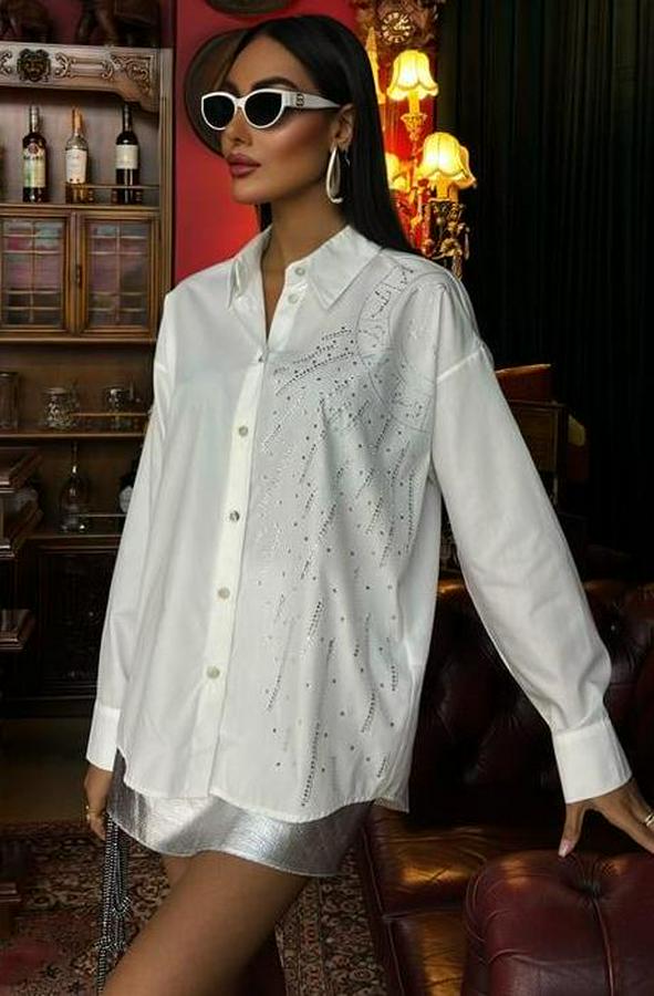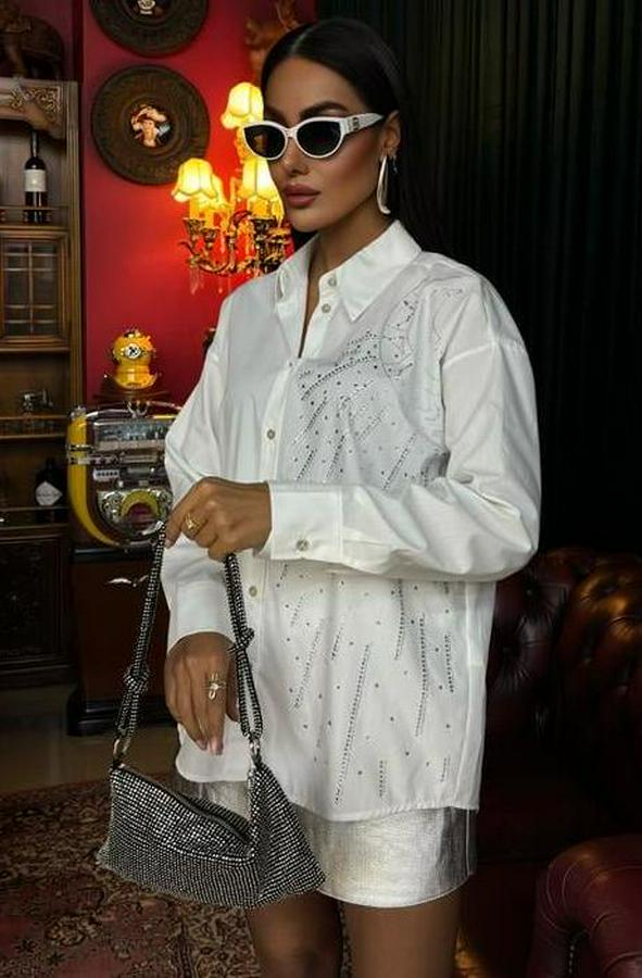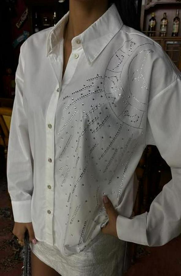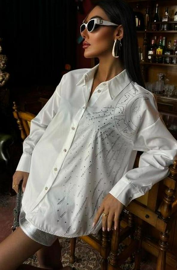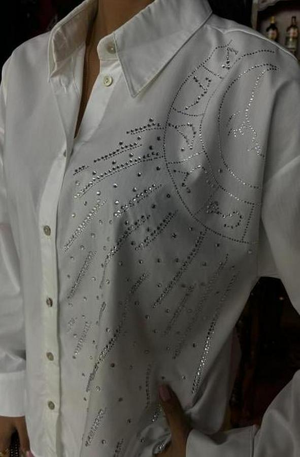 AnasayfaTüm ÜrünlerÜst GiyimGömlekAy Figürlü Taş Işlemeli Poplin Gömlek 3440