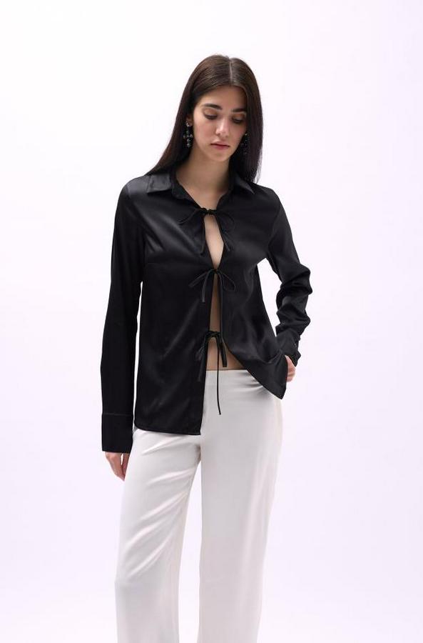 AnasayfaTüm ÜrünlerÜst GiyimGömlekBağlama Detay Saten Gömlek