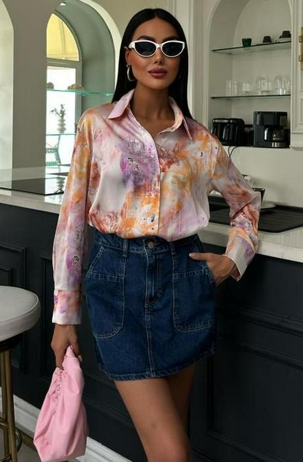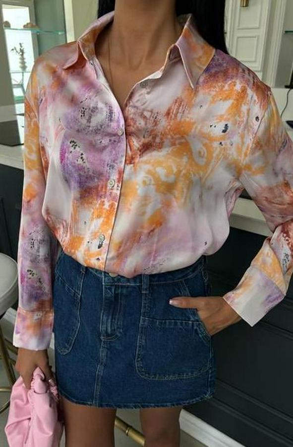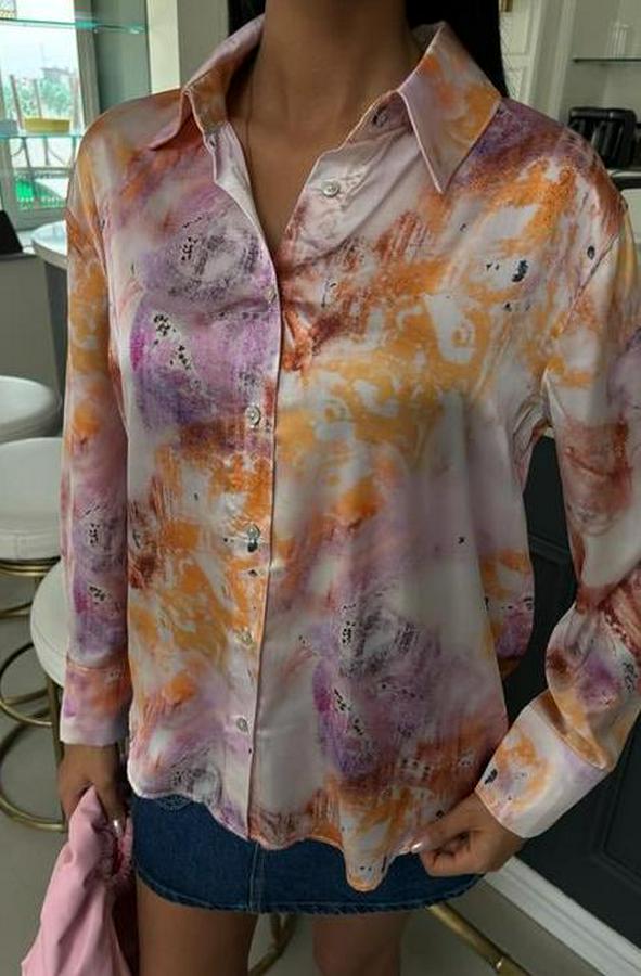 AnasayfaTüm ÜrünlerÜst GiyimGömlekBatik Desenli Saten Gömlek 3409
