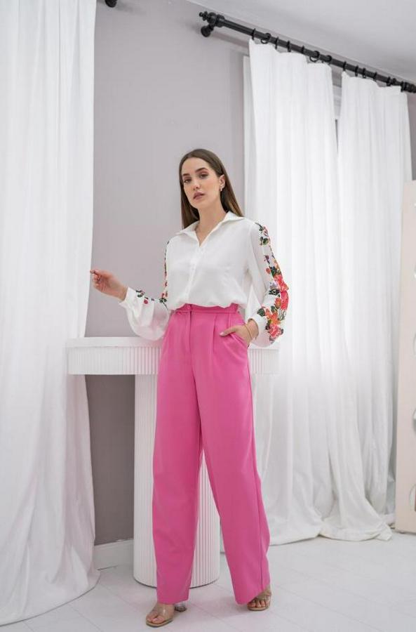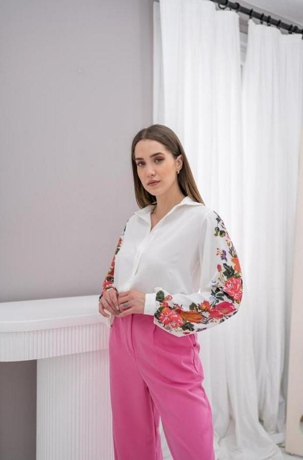 Beyaz Kolu Çiçekli Gömlek
