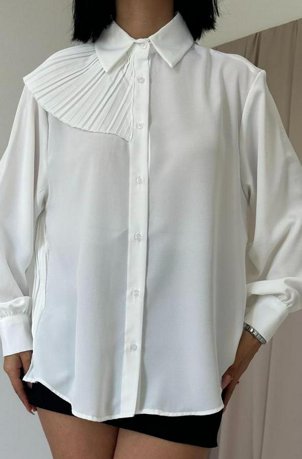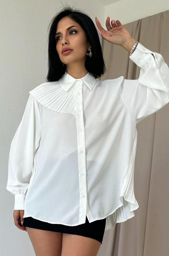 AnasayfaTüm ÜrünlerÜst GiyimGömlekBeyaz Pilise Detaylı Jesica Gömlek