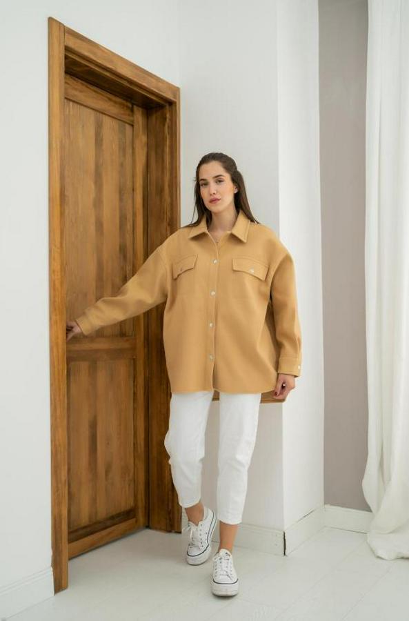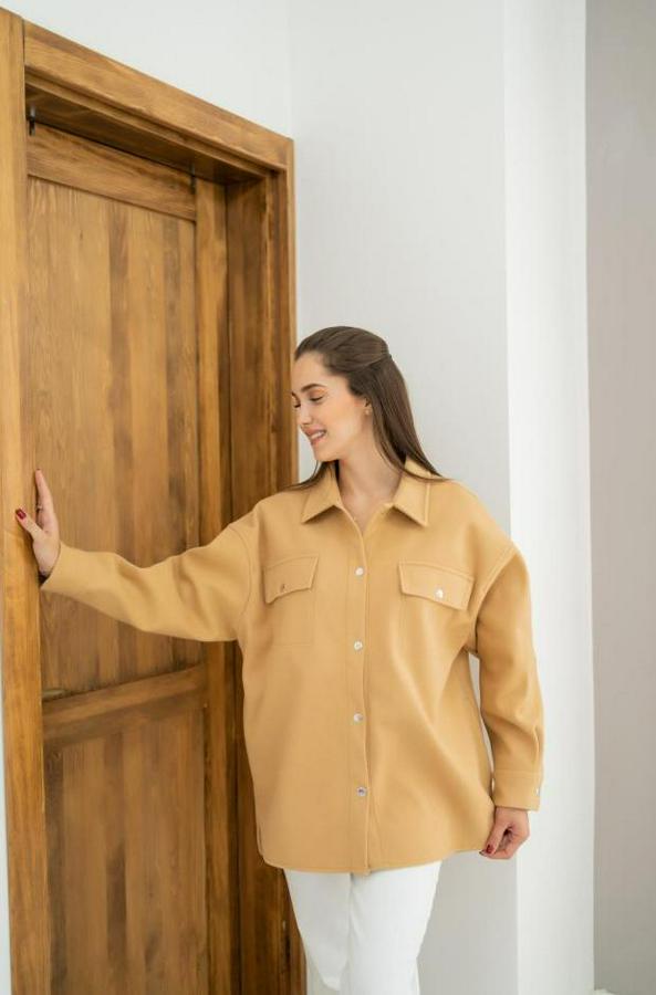 AnasayfaTüm ÜrünlerÜst GiyimGömlekCamel Kaşe Çift Cepli Gömlek