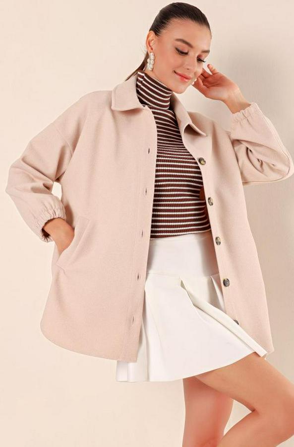 0674 Cepli Oversize Gömlek - Vizon