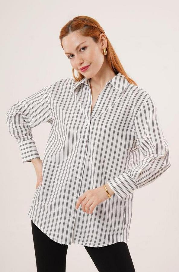 AnasayfaTüm ÜrünlerÜst GiyimGömlekÇift Çizgi Geçişli Düğmeli Gri Gömlek