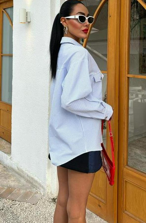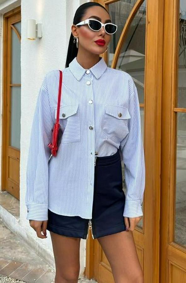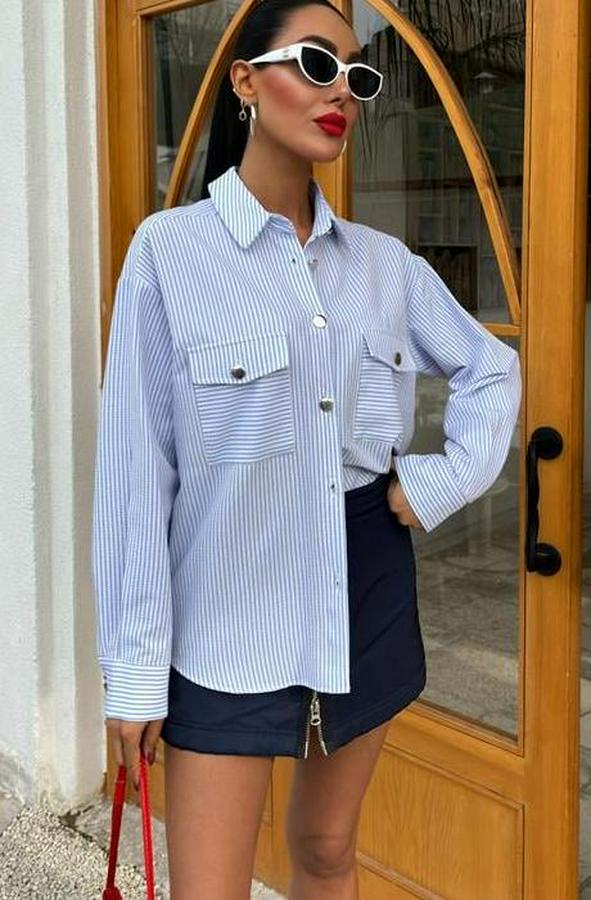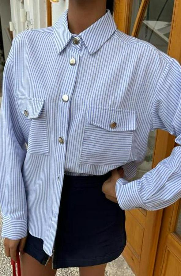 AnasayfaTüm ÜrünlerÜst GiyimGömlekÇizgili Gofre Kumaş Metal Düğmeli Gömlek 3460