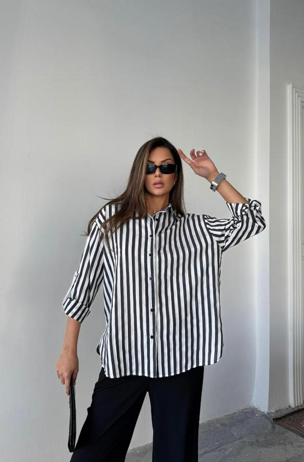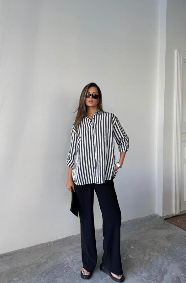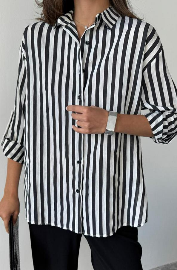 ÇİZGİLİ GÖMLEK KETEN - Siyah