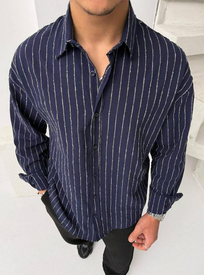 Erkek Çizgili Keten Gömlek