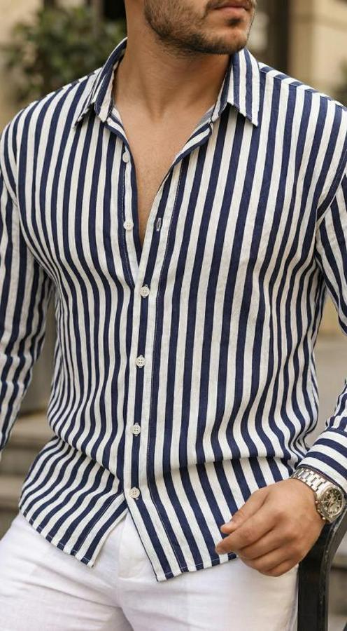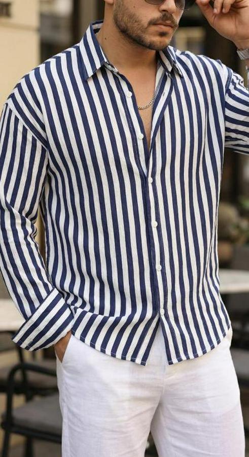 Erkek Dikey Çizgili Yarım Oversize Gömlek