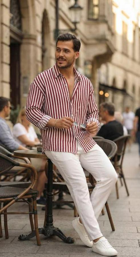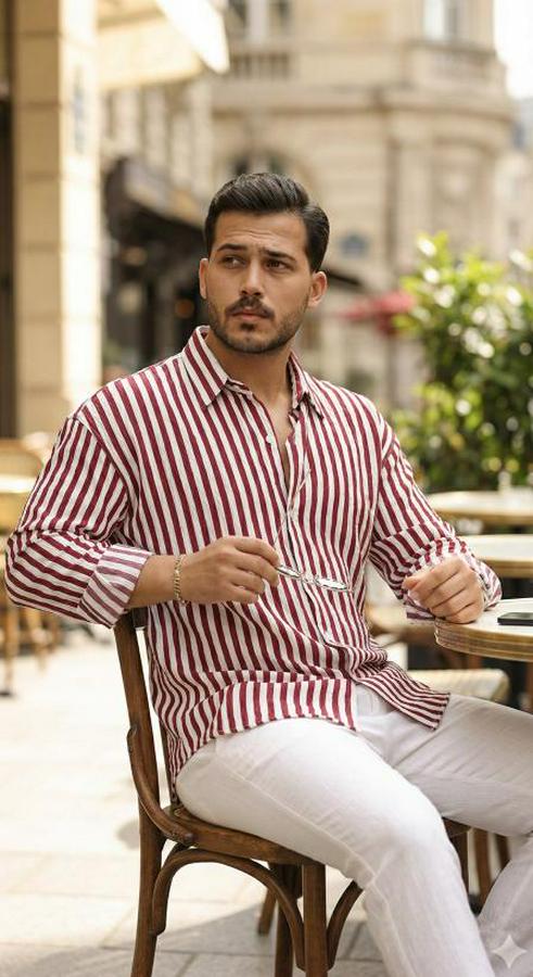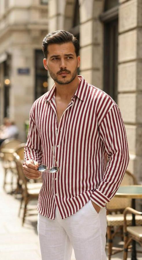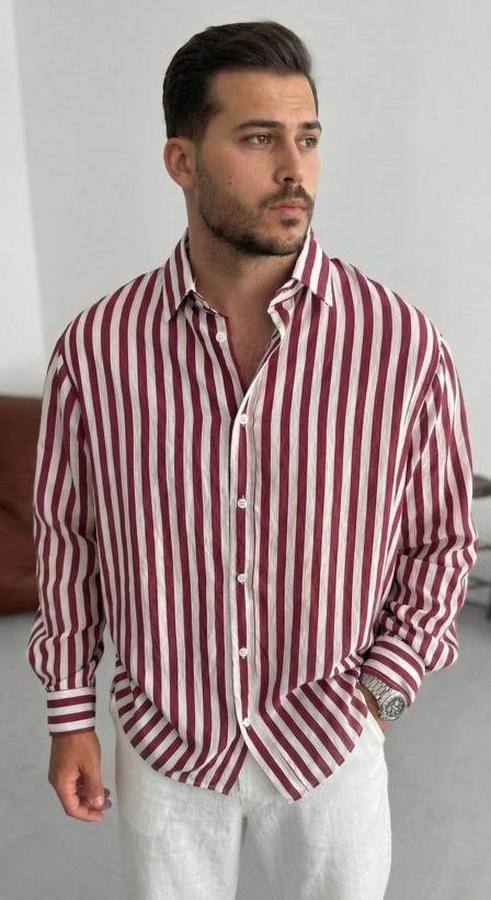 Erkek Dikey Çizgili Yarım Oversize Gömlek