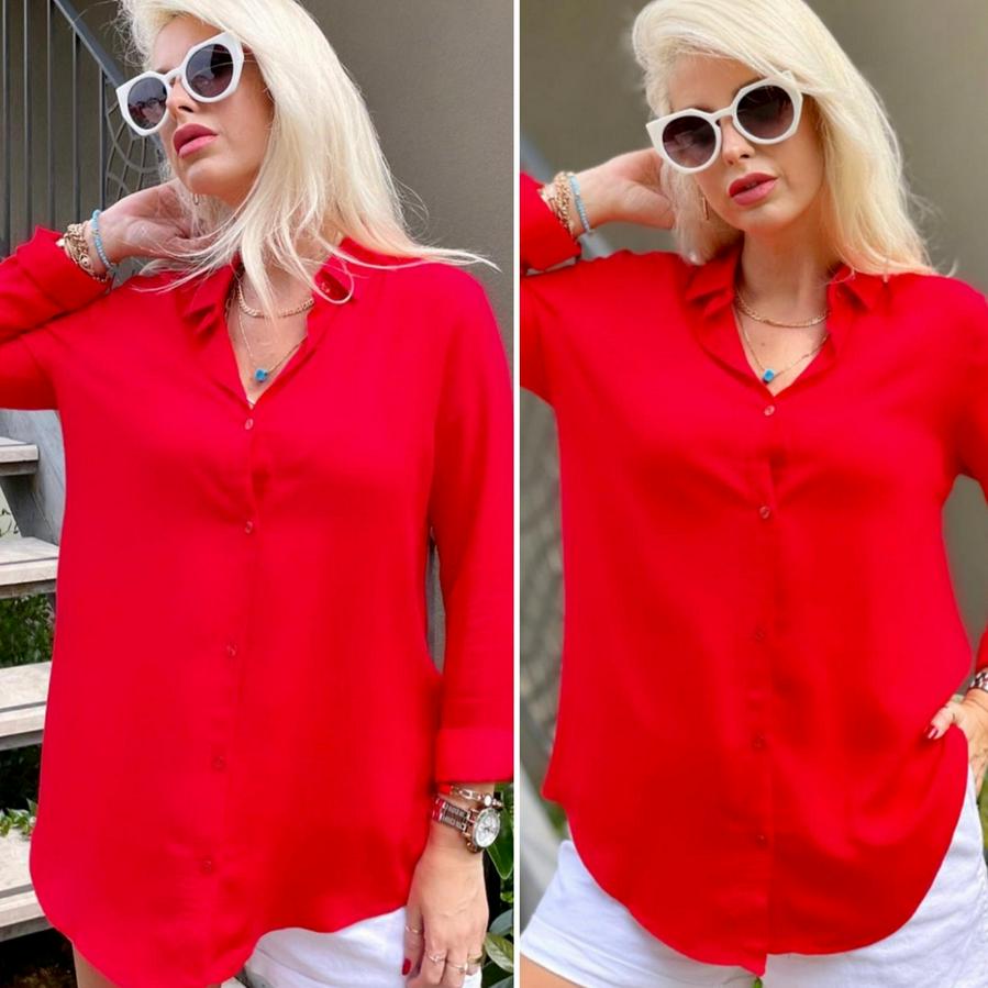 Dokuma Viskon KumaşEfsane Basic GömlekKırmızı12 Renk 9 Bedenön 62Arka Orta Kısım 70 Cm