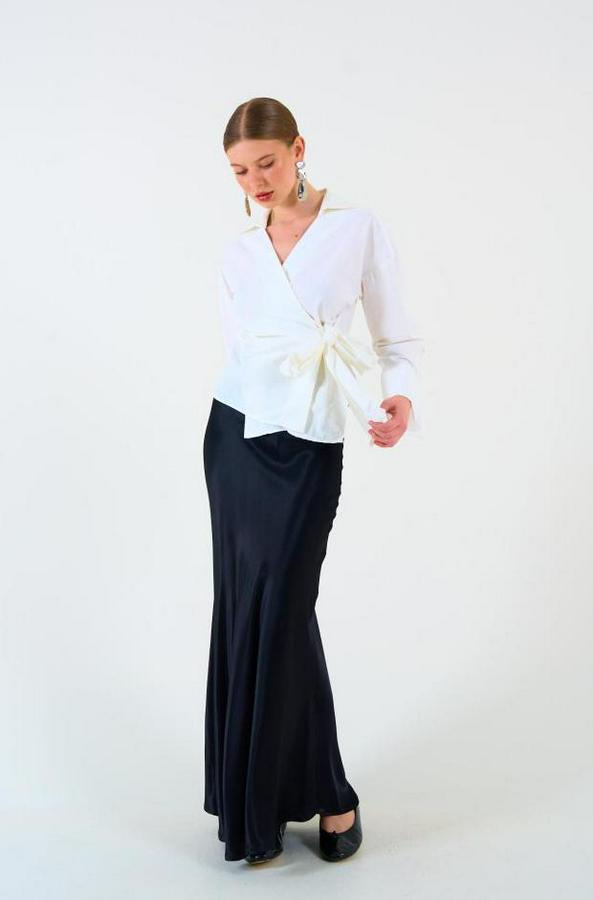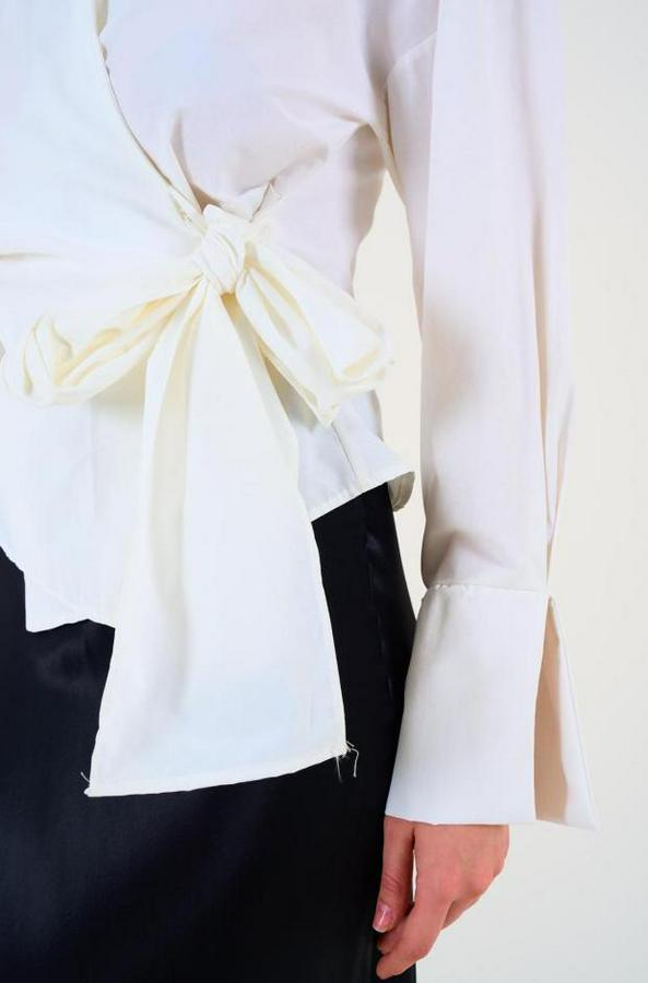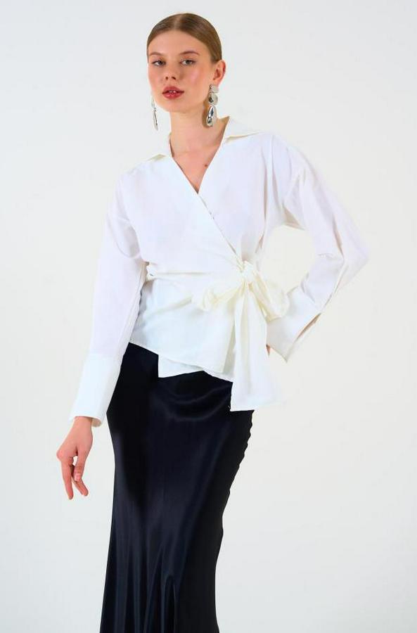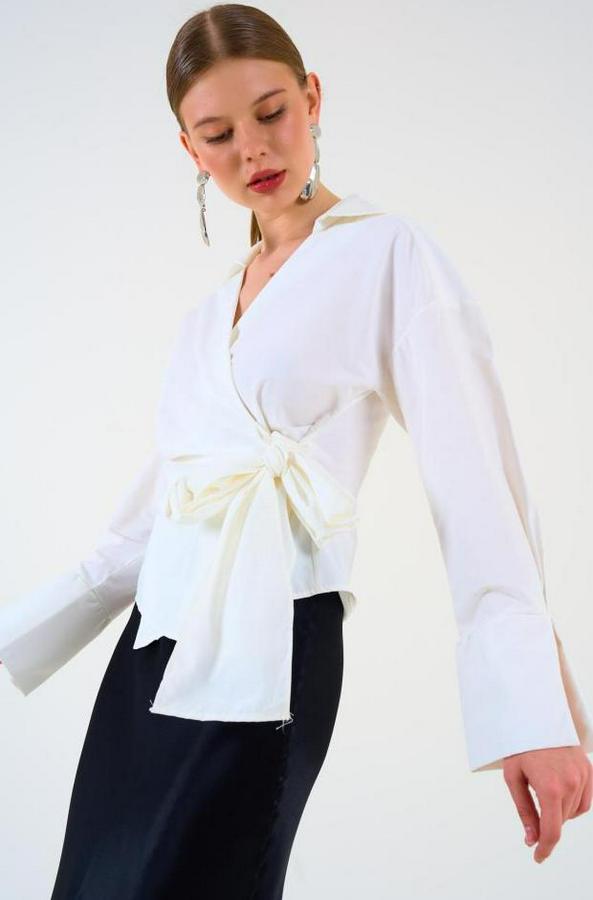 Düz Yandan Bağlamalı Gömlek - Ekru
