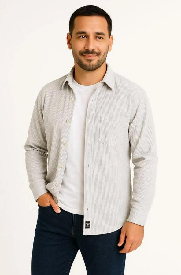 Erkek Fitilli Kadife Cepli Gömlek Oversize Rahat Kalıp - Gri