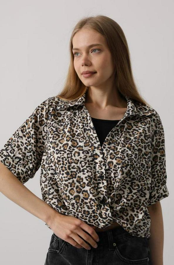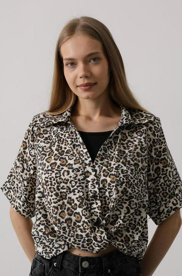 AnasayfaTüm ÜrünlerÜst GiyimGömlekGarnili Leopar Desen Gömlek