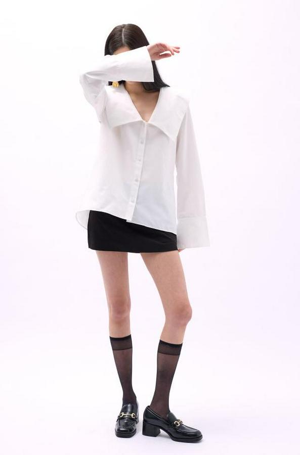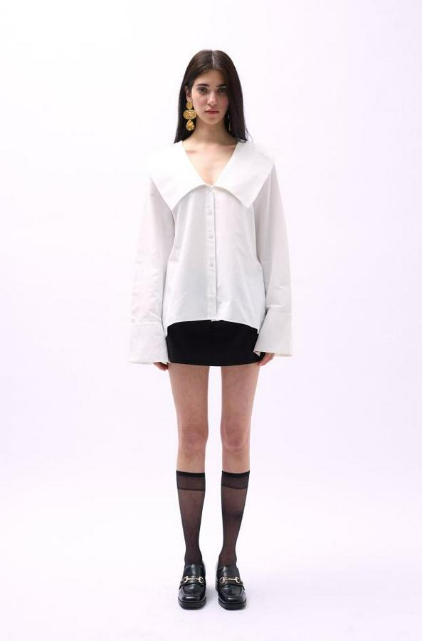 AnasayfaTüm ÜrünlerÜst GiyimGömlekGeniş Yaka Volan Kol Gömlek