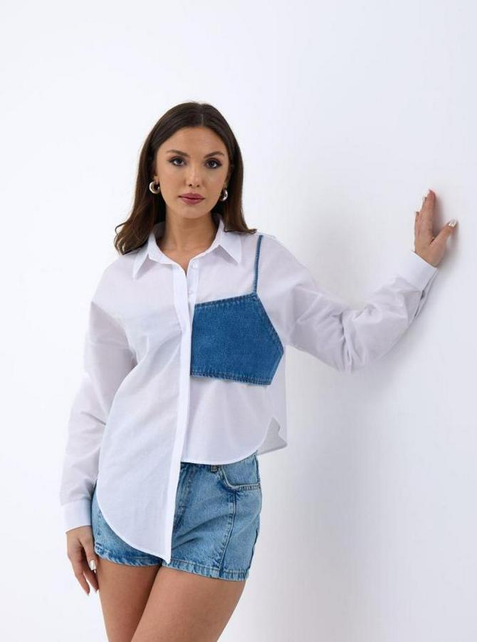 5419 GÖMLEK-MAVİ CEPLİ BEYAZ