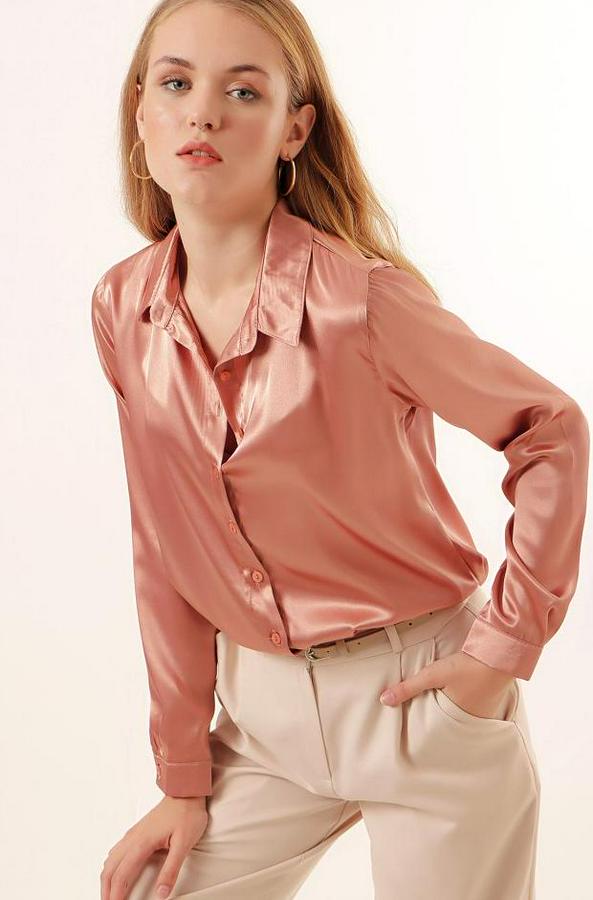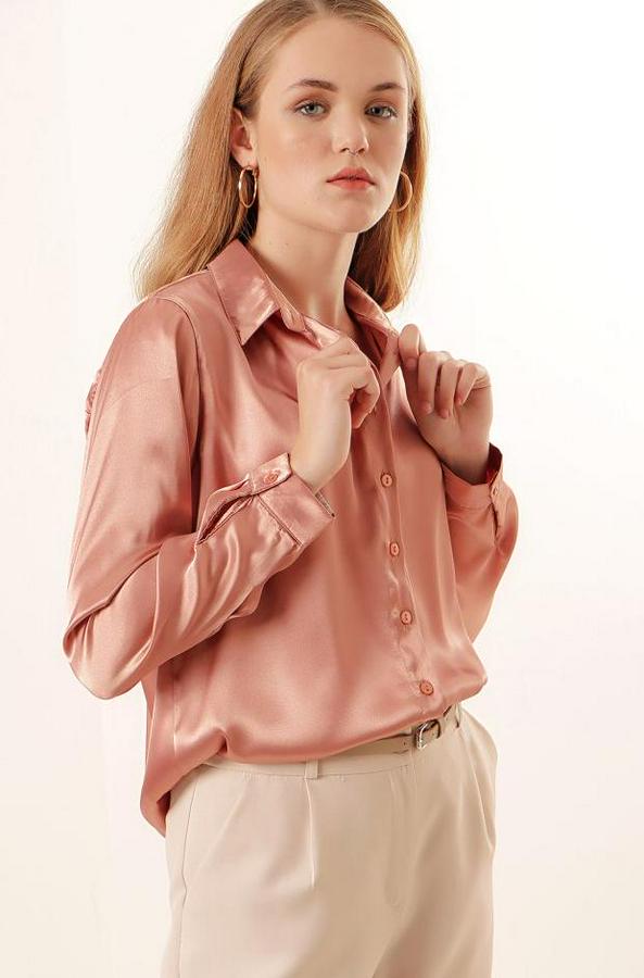 Hafif Dökümlü Saten Gömlek