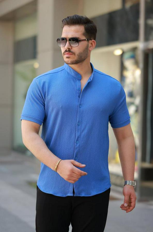 AnasayfaTüm ÜrünlerÜst GiyimGömlekHakim Yaka Kısa Kollu Gömlek