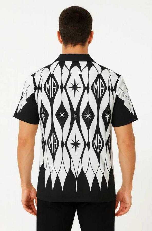 Erkek İki İplik Kumaş Dijital Baskılı Gömlek - Siyah