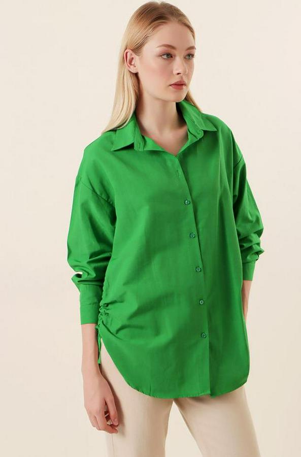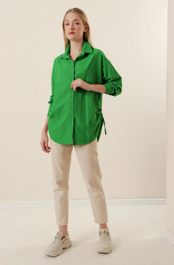 20132 İp Büzgülü Oversize Gömlek - Yeşil