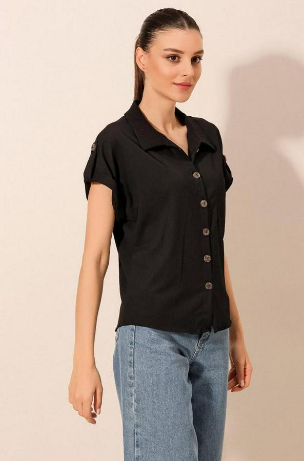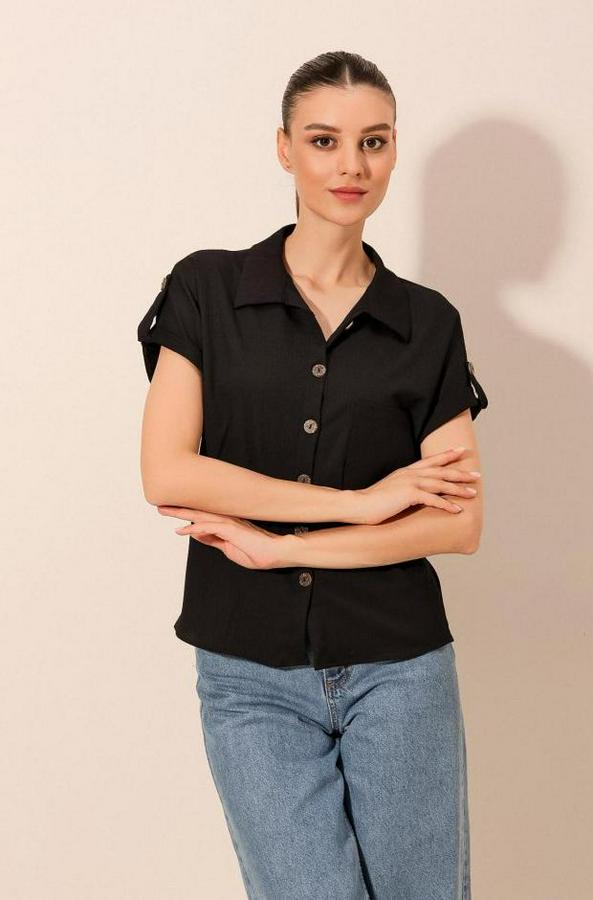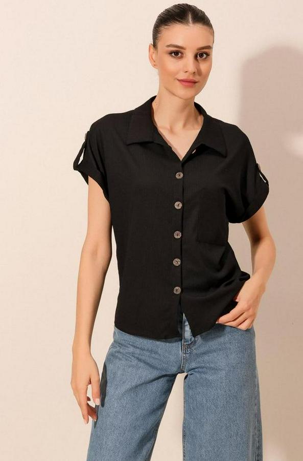 20187 Kısa Kol Oversize Örme Gömlek - Siyah