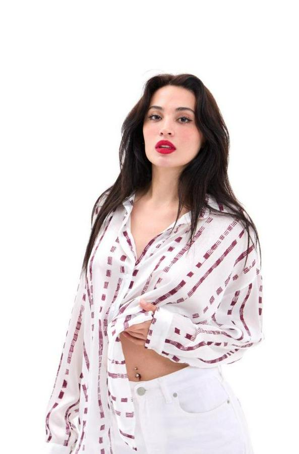 AnasayfaTüm ÜrünlerÜst GiyimGömlekKısa Kollu Beyaz Çizgi Desenli Örme Kumaş Pamuklu Gömlek